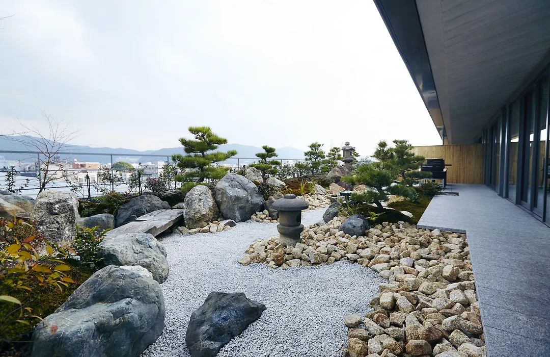 一部の広々とした客室にはプライベ-トなバスル-ムが備わっています. 部屋からは庭園の景色が一望できます.